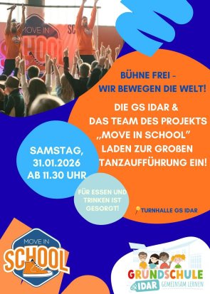 Vom 27.01.26 - 30.01.26 gestalten wir gemeinsam mit dem Team von "Move in School" ein spannendes Tanzprojekt unter dem Motte: "Bühne frei - wir bewegen die Welt".