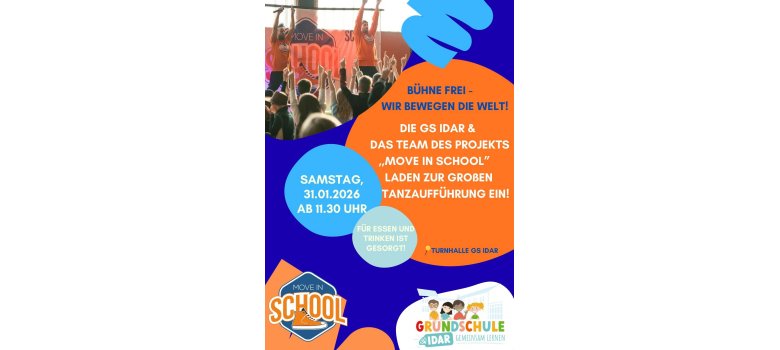 Tanzaufführung am Samstag, 31.01.2026, ab 11.30 Uhr in der Turnhalle der GS Idar.